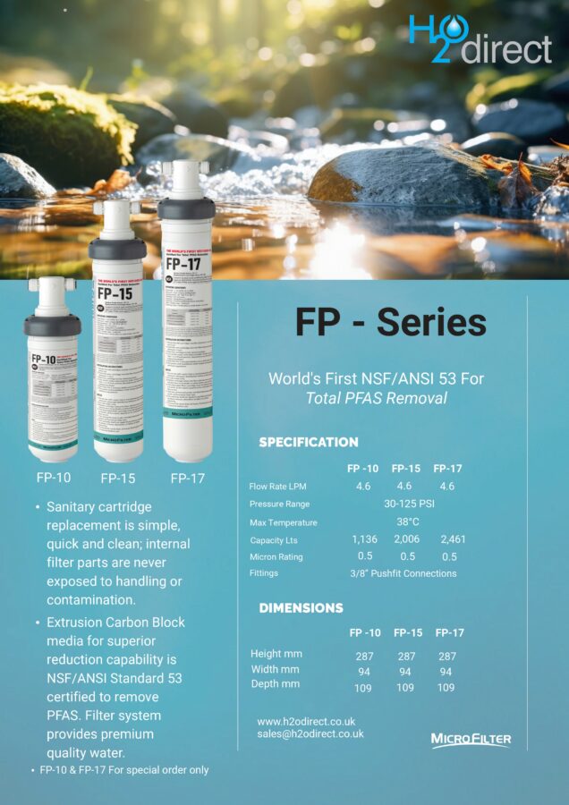 The Microfilter FP models are a water filtration product designed to reduce harmful contaminants in drinking water, including certain persistent chemicals known as PFAS (“forever chemicals”), as part of a certified treatment system.